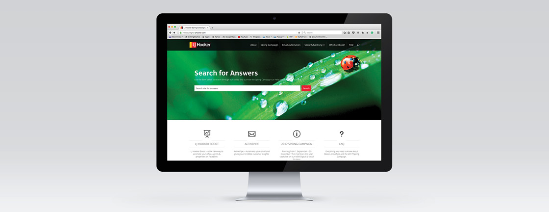LJ Hooker Social and Digital ECO System Microsite has the benefit to help the LJ Hooker Network throughout the latest Spring campaign – Maximum results & insights from emails, audiences from your website visitors and targeted optimised Facebook advertising ensuring ROI.